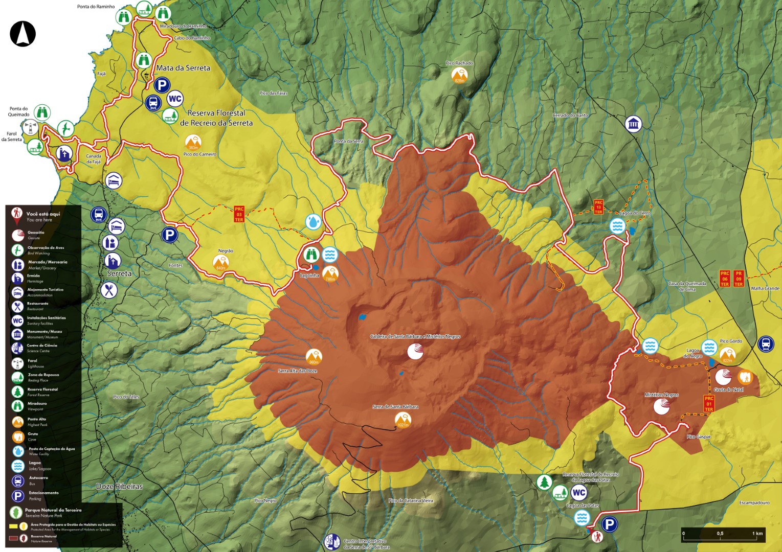 The GR01 TER West Great Route covers the west part of the island, in a linear route that connects the Forest Reserve and Recreation Park of Lagoa das Patas to the Forest Reserve and Recreation Park of Mata da Serreta. It has an extension of approximately 31,2 km.