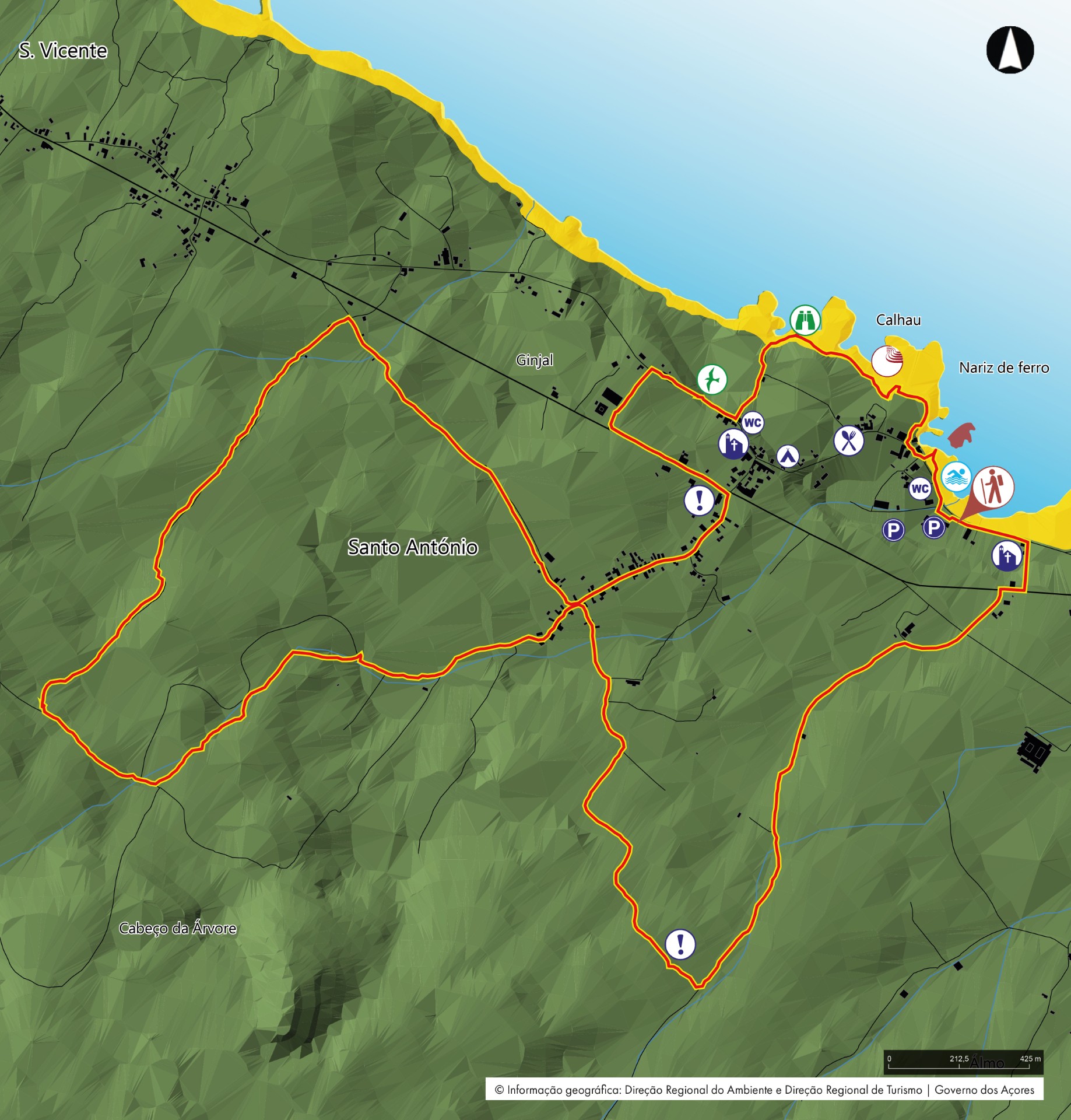 This small circular trail will lead you back to where you started and, if you are willing, you can swim at the Furna natural pools, which offer a view of the island of São Jorge. This area also offers a panoramic view of the Furnas de Santo António Natural Reserve, which includes a 0,16 ha islet of great importance as an habitat for migrating birds. Due to it being a nesting area for birds like terns and cory's shearwater during the summer, it is advised not to engage in activities that might disturb these species' nesting process.