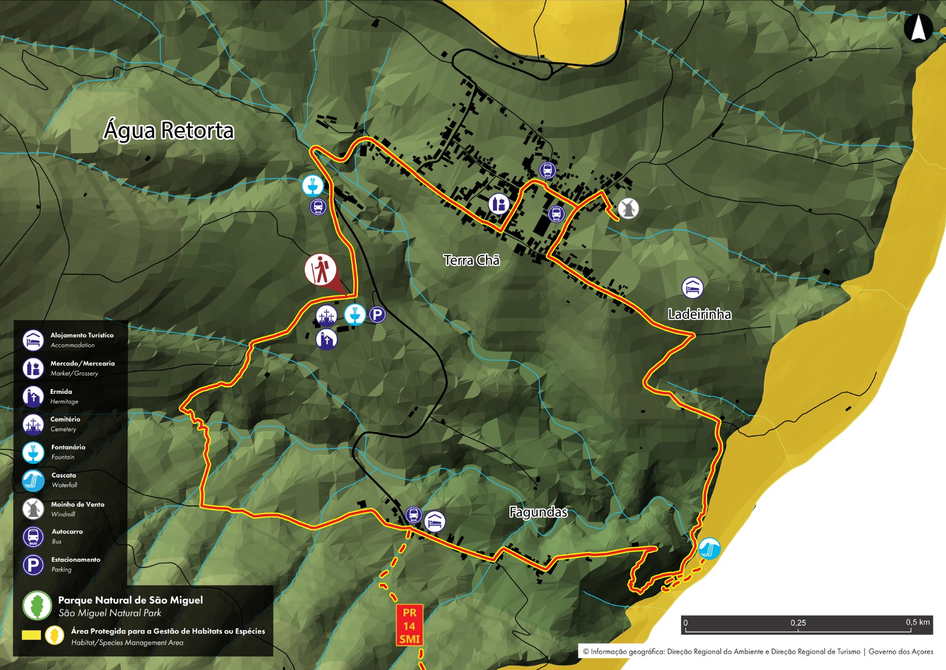 Follow the road until you go in a dirt road accessing pastures that crosses a small wood of mainly australian cheesewood (Pittosporum undulatum). Along this leg, profit the high level to enjoy the view over the village center, Pico Bartolomeu, Pico da Vara and in days of good visibility, the island of Santa Maria. Proceed until reaching a tarmac road, giving access to the place of Fagundas.