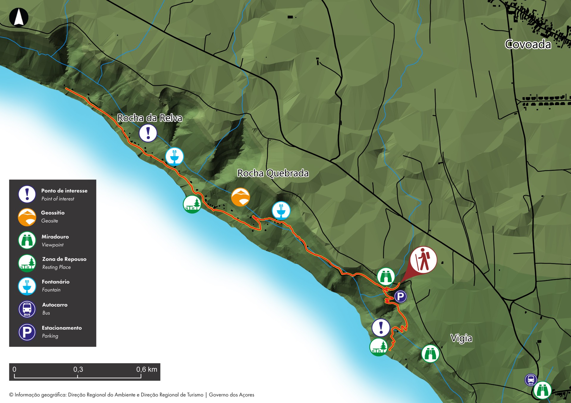 Along the trail you will find fountains, a resting area and a shrine in honor of Nossa Senhora dos Anjos. Reaching the end of the walk, near the last houses, you have to return the same way, until the starting point.