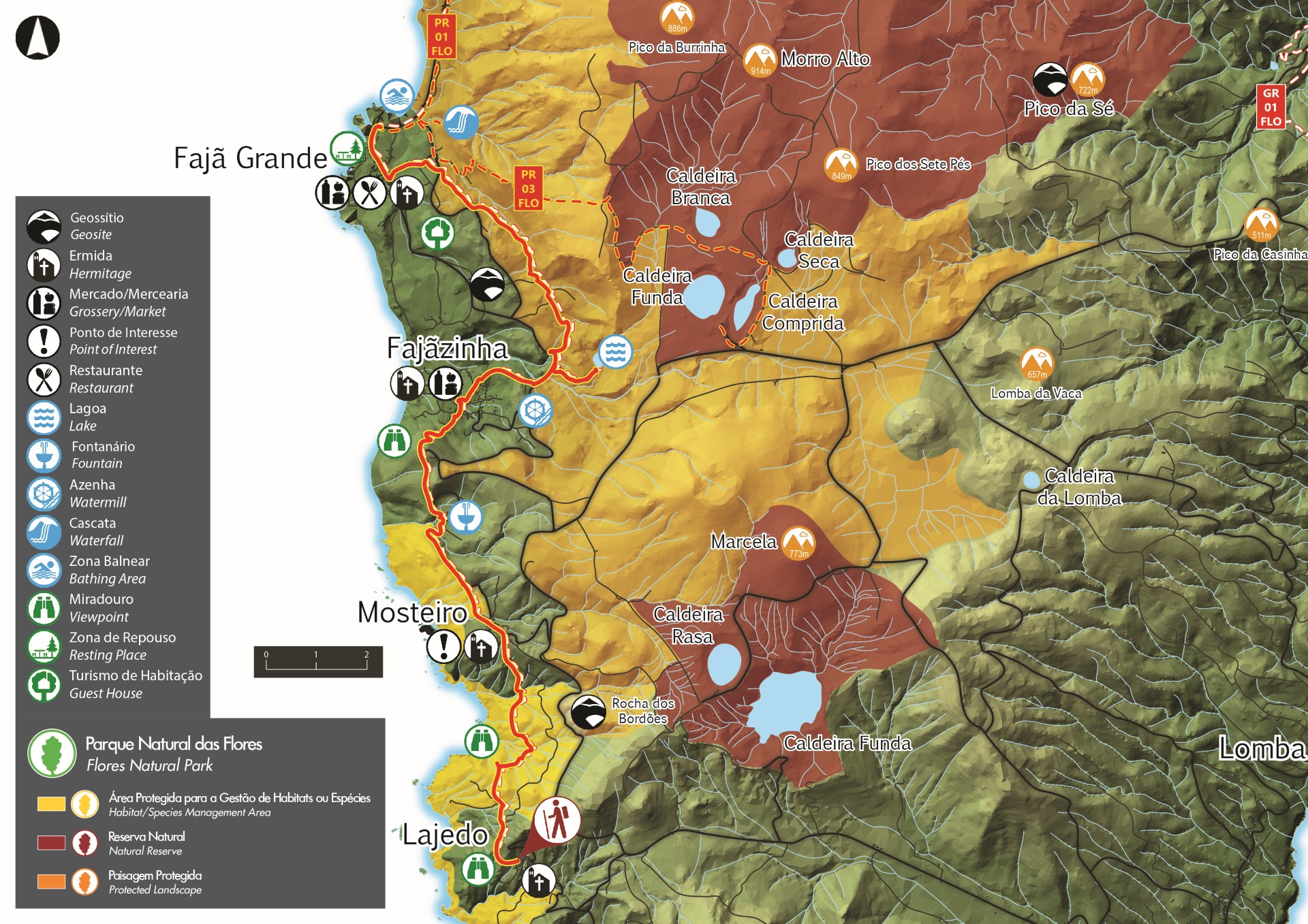 Cruce el puente de Ribeira do Ferreiro y gire a la derecha. Algunos metros más adelante, continúe entre prados hasta Fajã Grande. En la calle Senador Freitas, gire a la derecha y recorra los últimos metros del trayecto hasta el merendero de Fajã Grande.