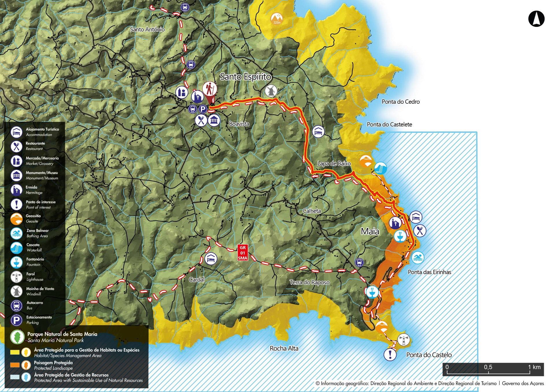 Arrivati a Maia, potrete ancora fare una piccola deviazione per vedere la cascata della Ribeira do Aveiro da un’ altra prospettiva, ed anche le due cantine che furono costruite qui nel 1579. Il percorso prosegue lungo la strada, terminando vicino alla zona balneare. Da qui è possibile prendere il sentiero GR 01 SMA – Grande percorso di Santa Maria, per raggiungere Vila do Porto.