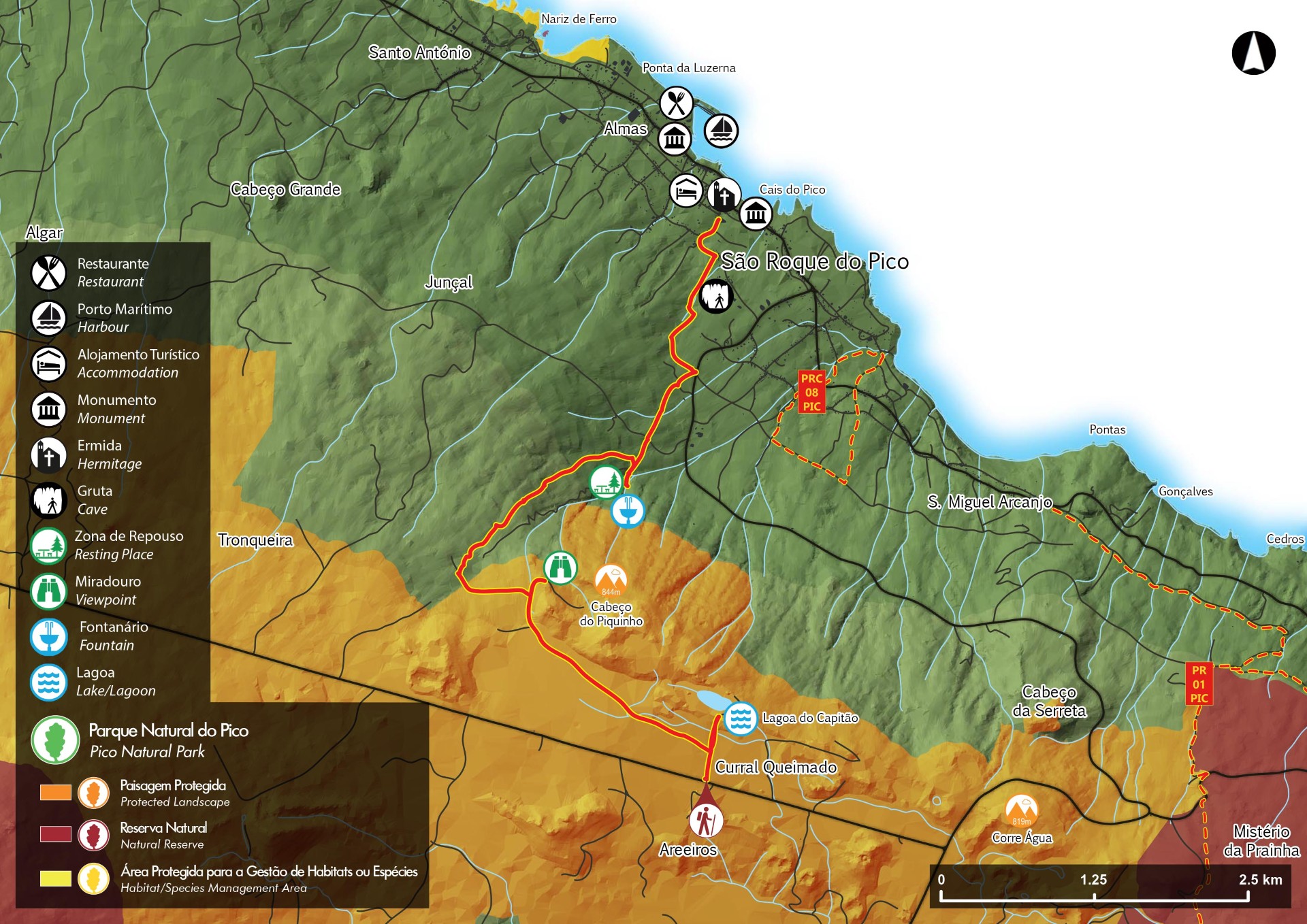 Em seguida, prossiga a descida em direção ao Cais do Pico, que alterna troços de asfalto e de terra batida, até chegar ao Convento de São Pedro de Alcântara, ponto final do percurso.